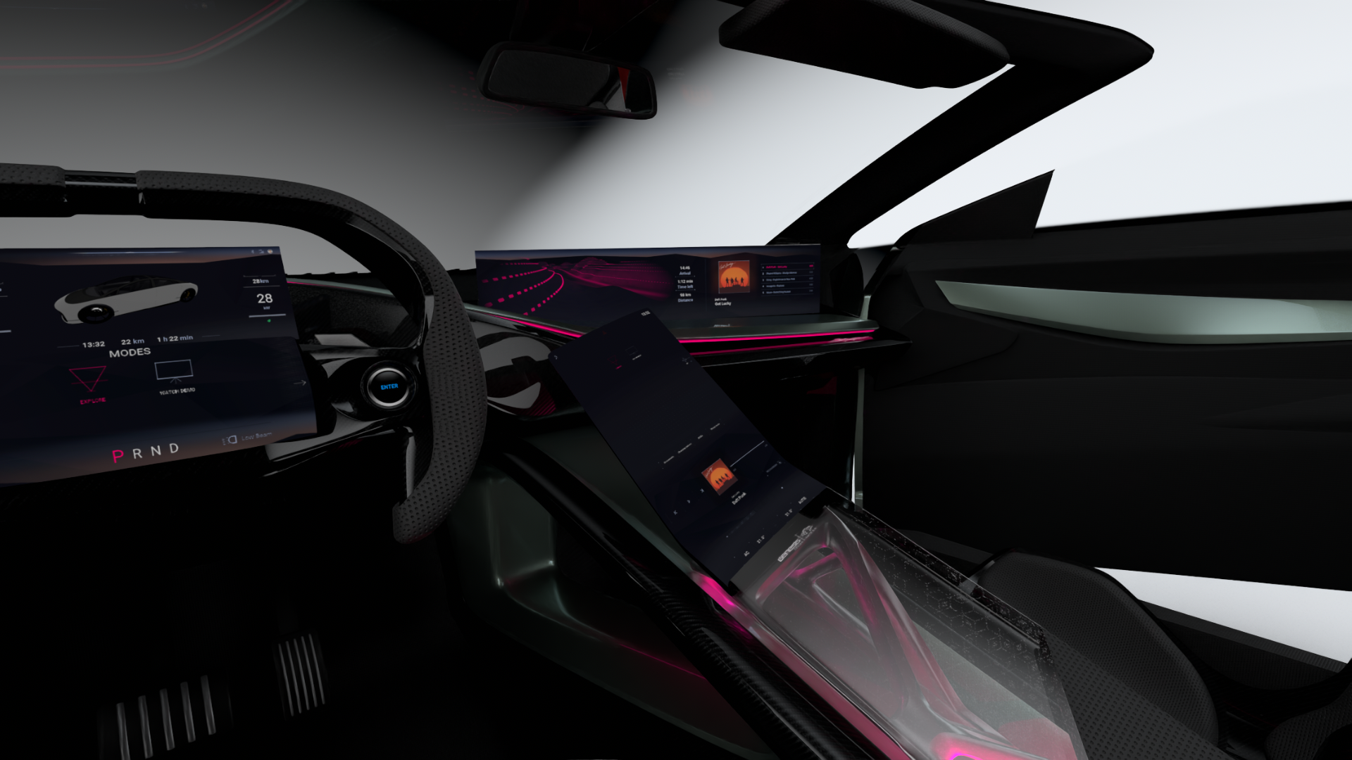 Genesis Design Studios has created an aesthetic, forward-looking showcar with the AVIERA EV8 Spyder, merging visionary automotive design with a digital user experience. Using Incari Studio, the HMI for the cockpit was developed and made fully interactive within a virtual 3D environment.